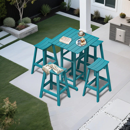 5-Piece HDPE Outdoor Bar Set – Patio Bar Table & 4 Stools, All-Weather
