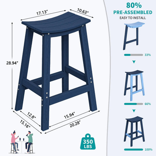 Plawdlik Wood-Look HDPE Bar Stool – All Weather Outdoor Patio Stool with Footrest, Easy Assembly