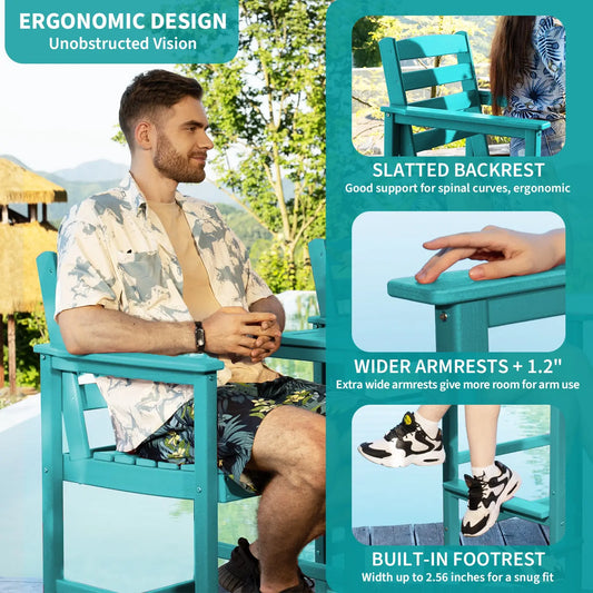 Plawdlik Set of 2 Tall Adirondack Bar Chairs - All Weather HDPE Patio Seating with Footrest