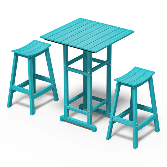 3-Piece HDPE Outdoor Bar Set – Square Patio Table & 2 Bar Stools, All-Weather Furniture for Balcony, Garden, or Poolside