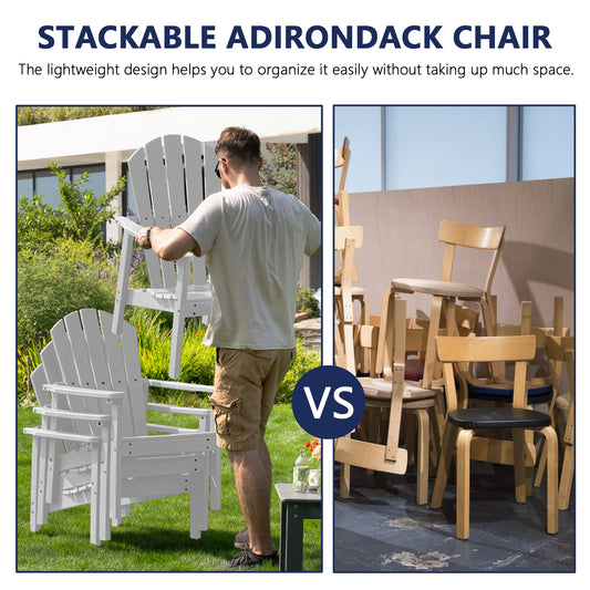 Plawdlik Stackable Adirondack Chair – All-Weather HDPE Outdoor Chair for Patio, Porch, and Garden